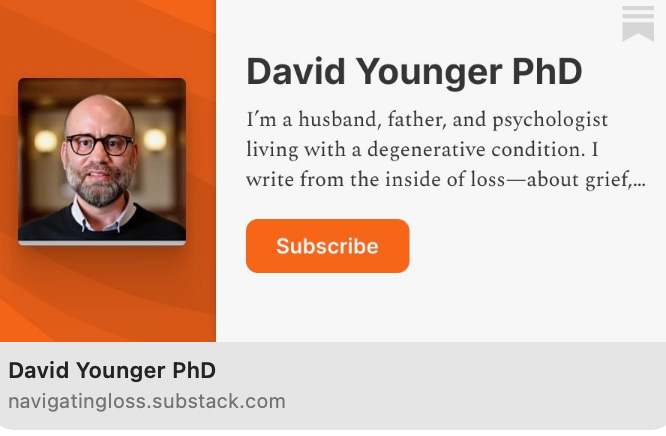 I’m a husband, father, and psychologist living with a degenerative condition. I write from the inside of loss—about grief, tenderness, and what it means to keep living when life breaks and reshapes you.